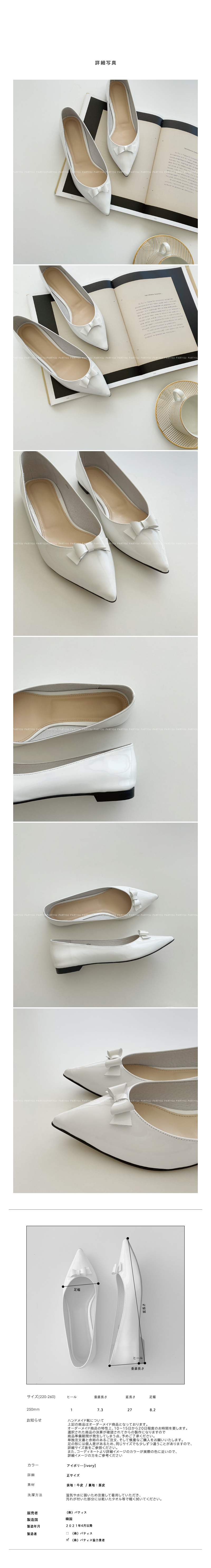 女性らしく密かに少女らしいアイテムです。 柔らかくて軽い雰囲気のエナメル素材で、春のシーズン、爽やかにご愛用していただけるアイテムです。 先が長くなく適度に角ばっているので、流行に関係なくクラシックなムードで長くご一緒していただけます。 固くなく、ふわふわしたエナメルなので、痛くなく安定的に着用しやすく、小さなリボンディテールは立体的で、ボールドにボリューム感の生きるかわいらしいデザインで、一般的なカジュアルリボンフラットよりは、上品な雰囲気でお楽しみいただけます。