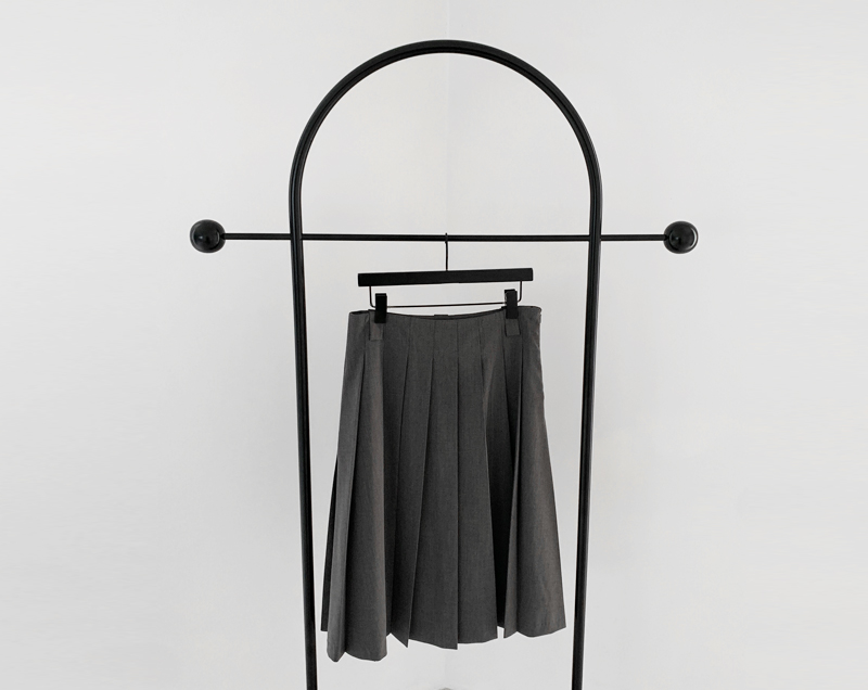 플리츠 디테일로 배는 안정감 있게 잡아주고