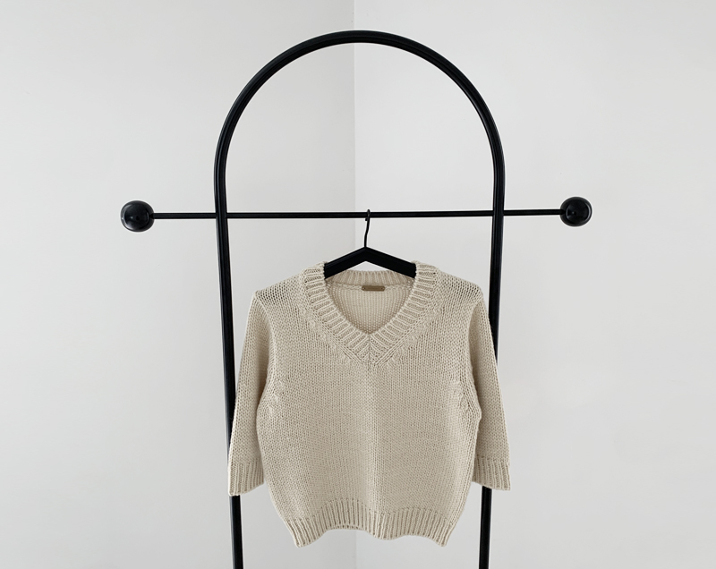 브이넥으로 목선과 쇄골라인이 드러나 여성스러운