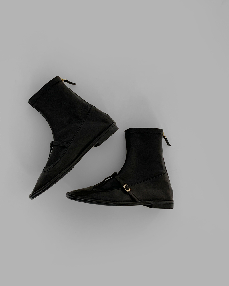 깔끔한 스퀘어 앞코 라인으로 단정한 분위기를