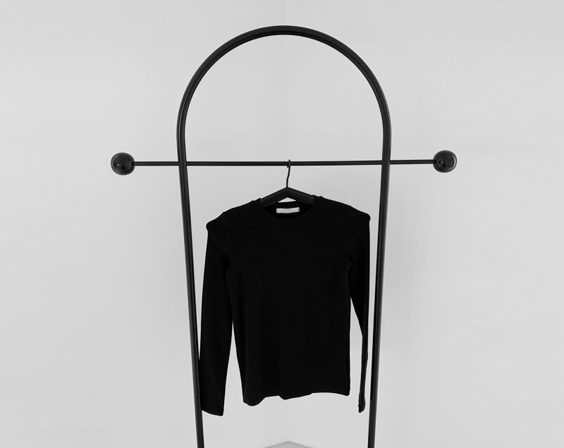 라운드 넥으로 목선을 부드럽게 잡아드리고