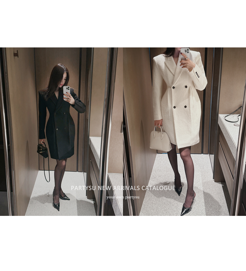 슬림한 라인이 매력적이며 어깨패드로 각지고