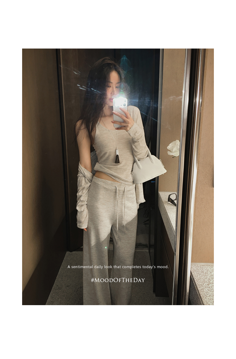 걸쳐지는 가디건과 탑, 팬츠로 이루어진 아이템인데요.