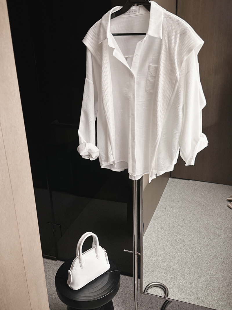 DETAIL - 정사이즈 / 두께감△ / 비침△ / 신축성△(숄) / 안감X / 패드X