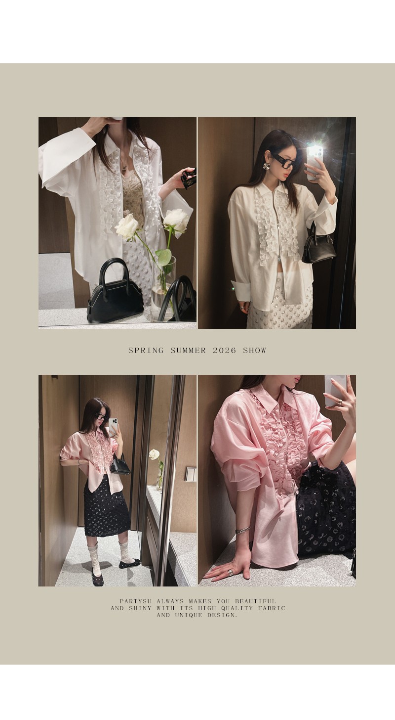 깔끔한 카라 넥과 프릴 디테일로 여성스러우며