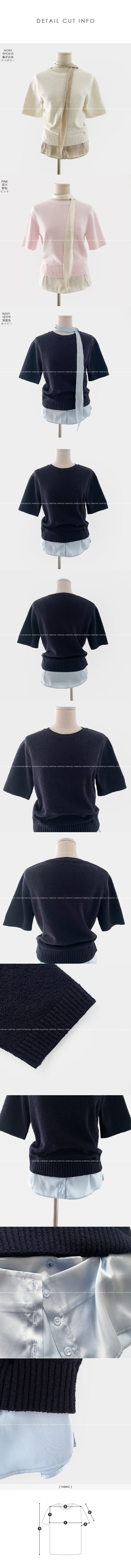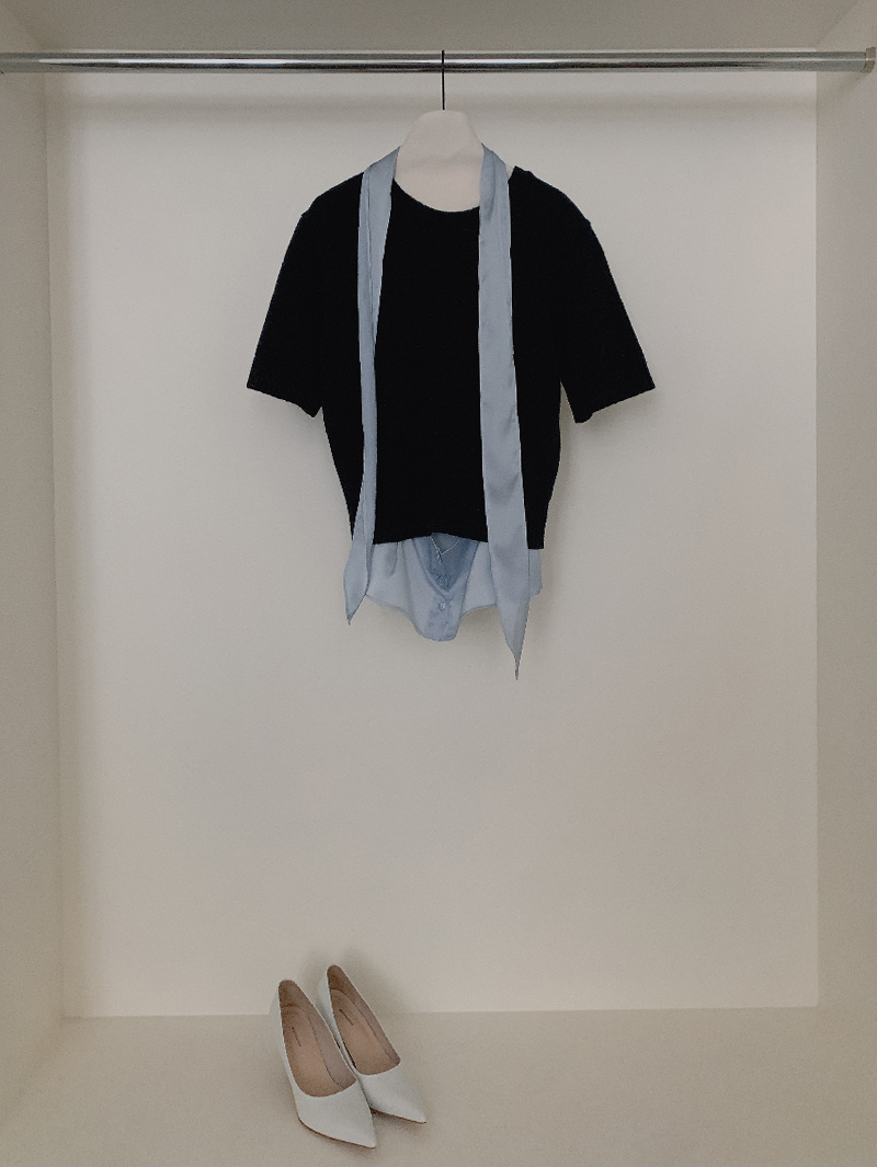 반팔 니트와 셔츠를 레이어드 한 듯한