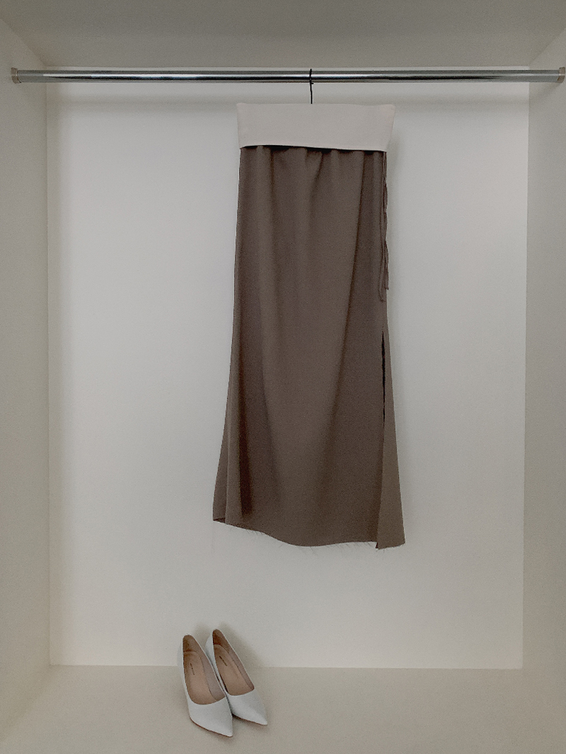 긴 기장감과 사이드 트임으로 레그 라인을
