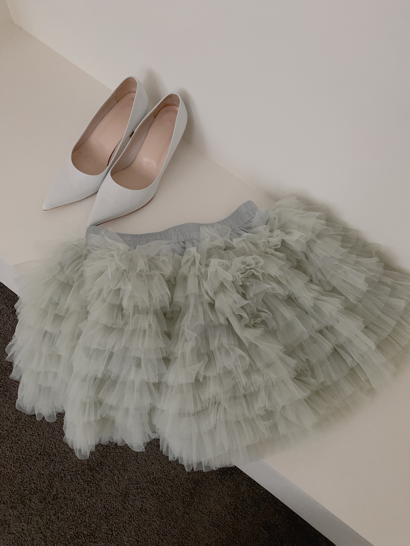 겹겹이 쌓인 샤 스커트로 매우 화려한