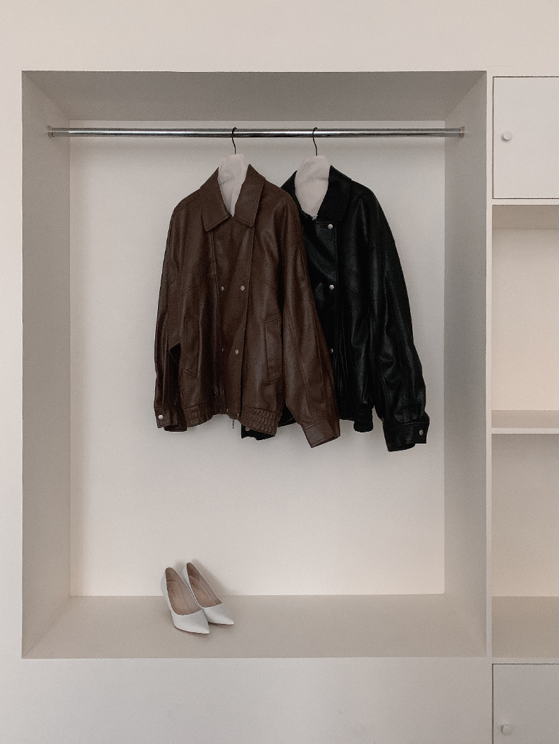 무스 레더 버튼 재킷