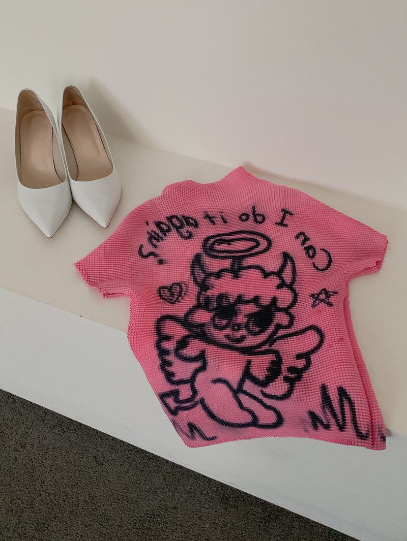 앞뒤 키치한 프린팅으로 트렌디한 감각을