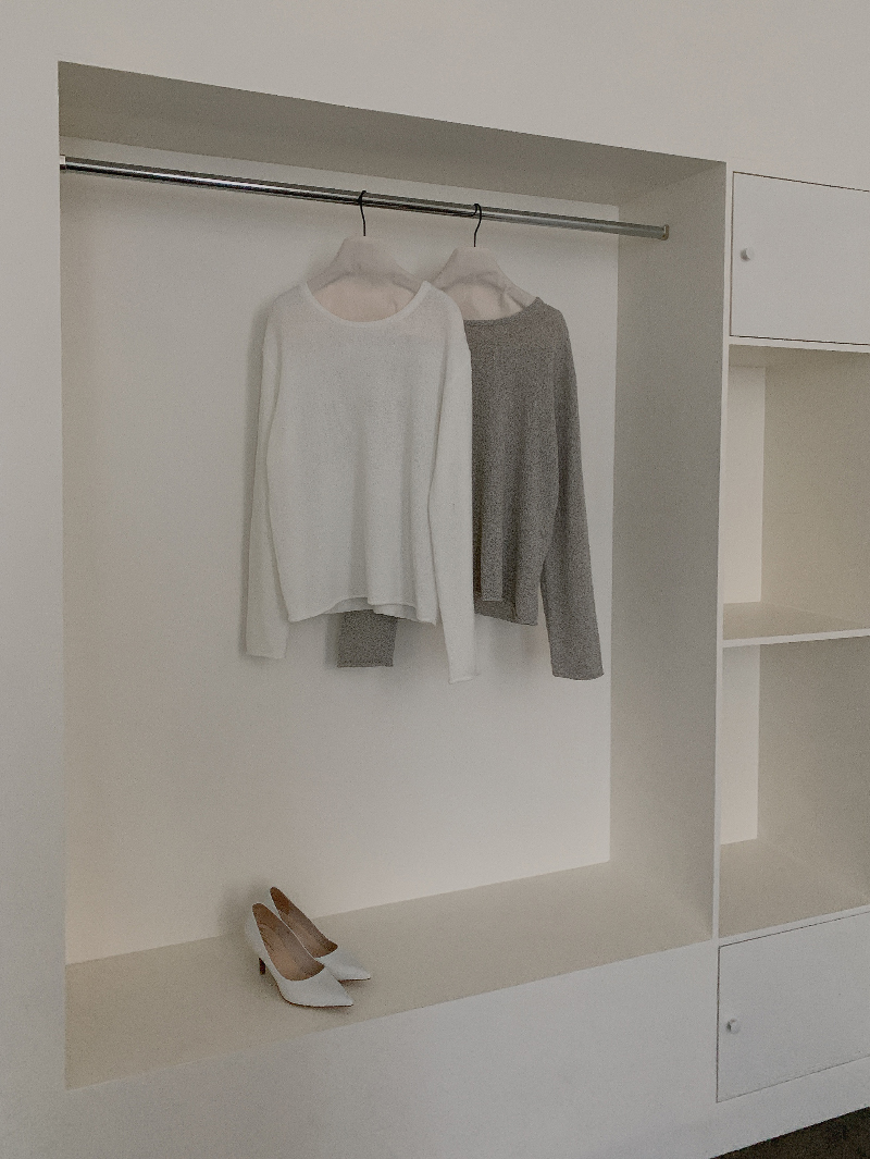 라운드 넥으로 목선을 편안하게 잡아드리고